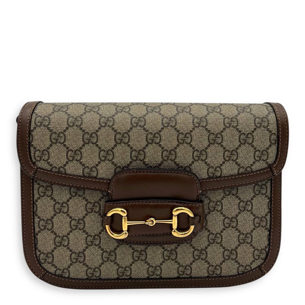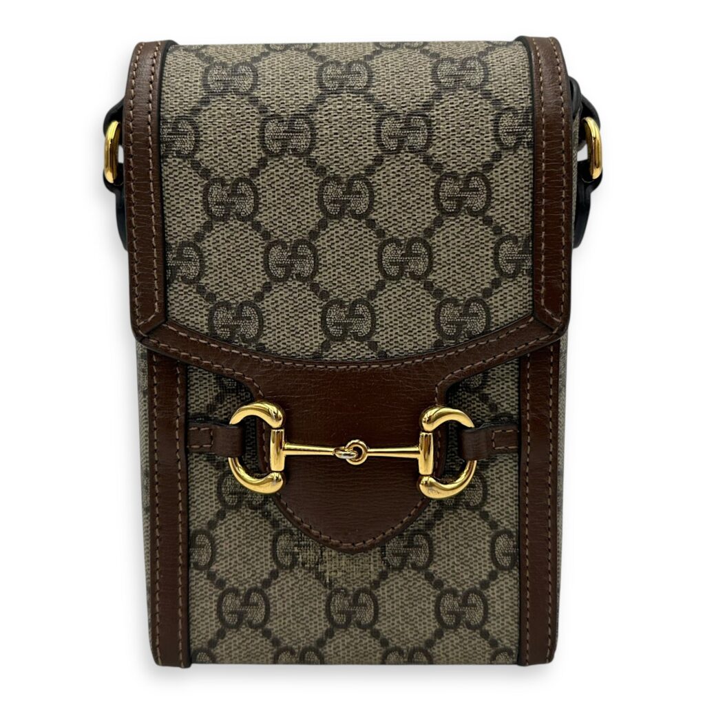 Horsebit 1955 Brown Crossbody Bag in Monogram Coated Canvas, Gold hardware