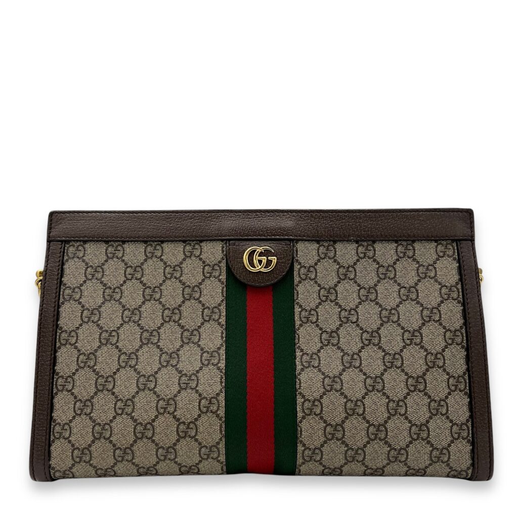 Ophidia Shoulder Bag Brown in Coated Canvas, Gold hardware