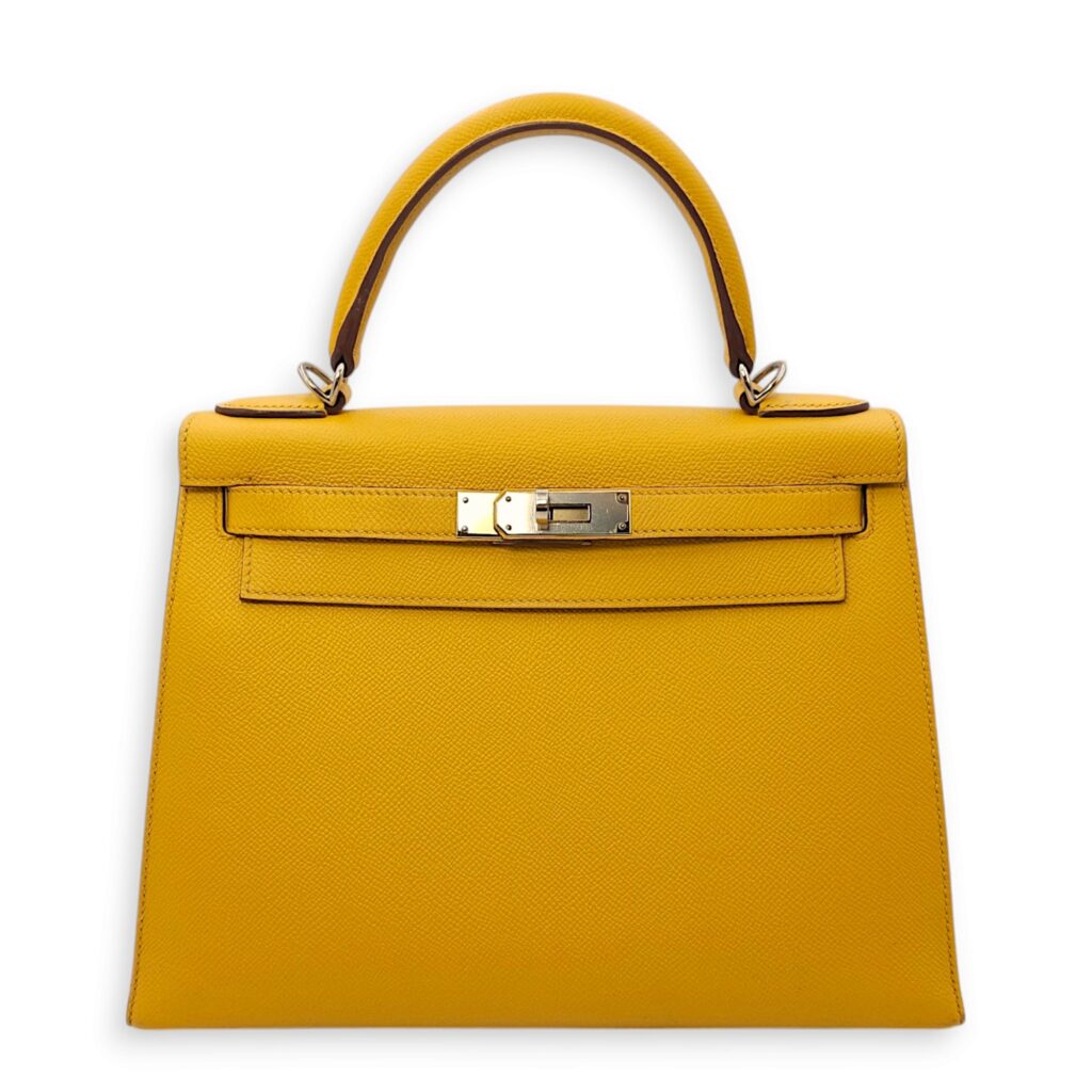 Sellier Kelly 28 Jaune Ambre in Epsom, Palladium hardware