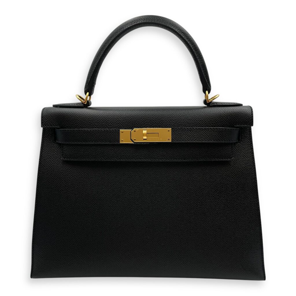 Sellier Kelly 28 Black in Epsom, Gold hardware