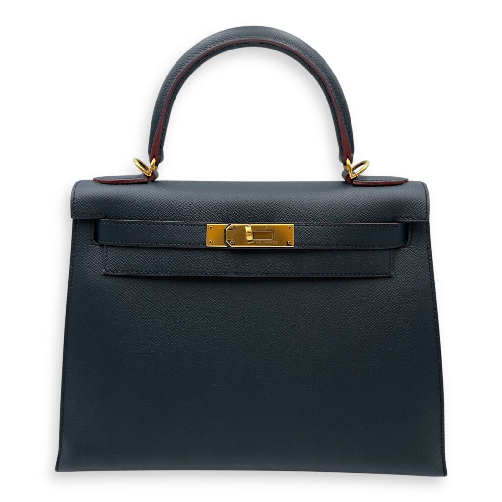 Sellier Kelly 28 Blue De Prusse in Epsom, Gold hardware