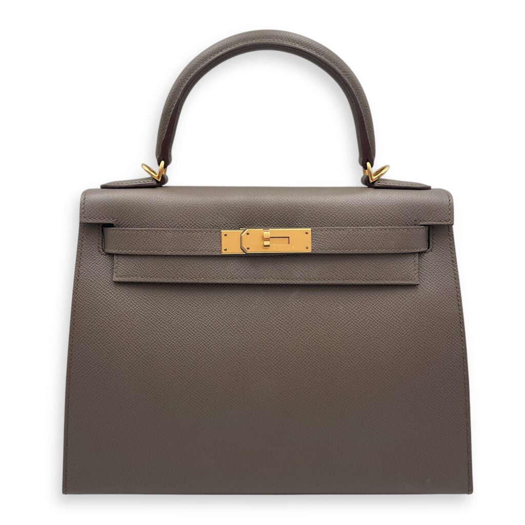 Sellier Kelly 28 Gris Etain in Epsom, Gold hardware