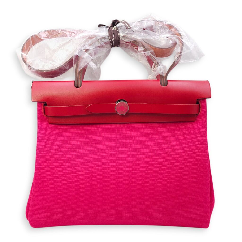 Herbag 31 Rose Pourpre Fauve Shoulder Bag in Canvas, Palladium hardware