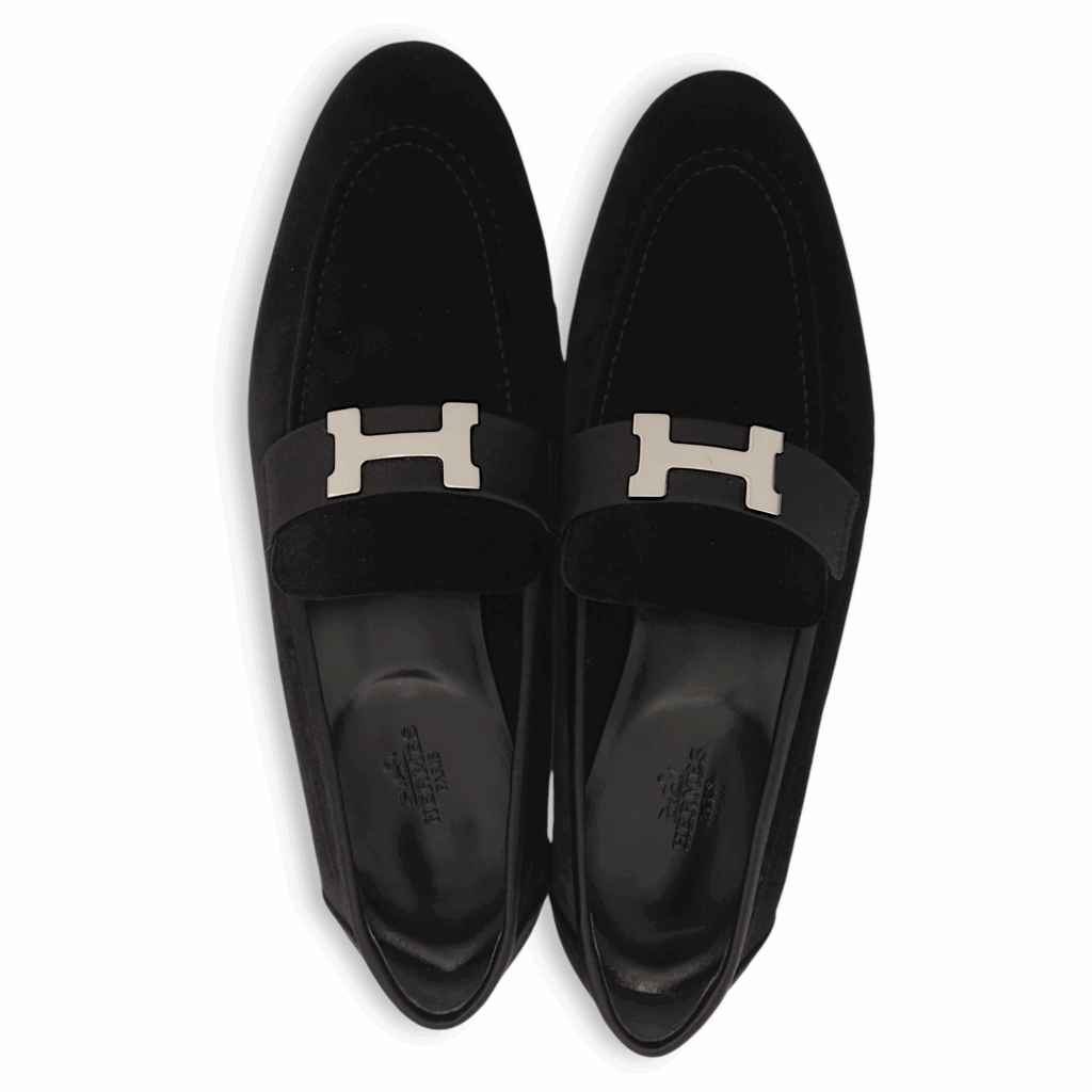 Paris 38.5 Black Loafers in Suede Leather, Palladium hardware