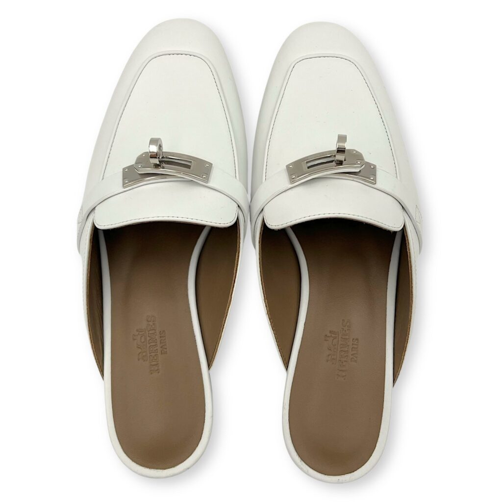 Oz 37 Blanc Mule in Calfskin, Palladium hardware