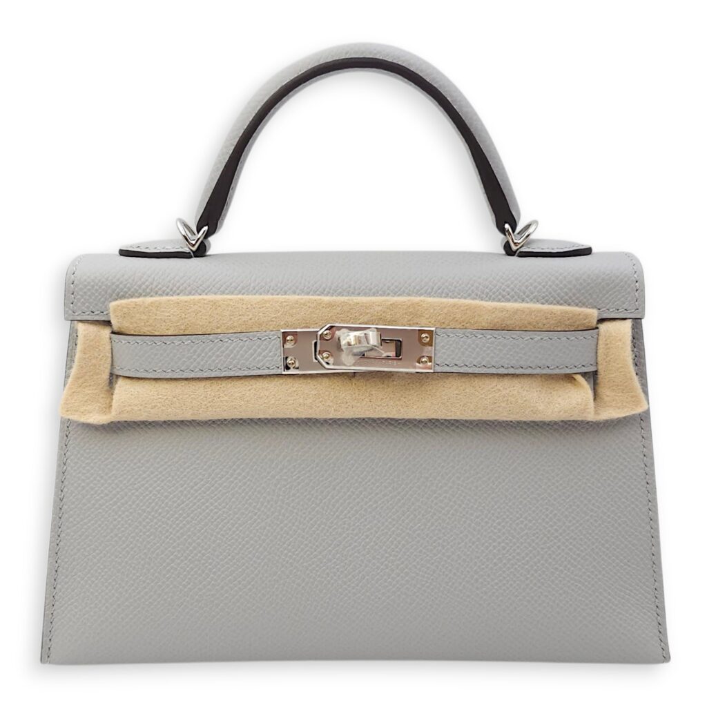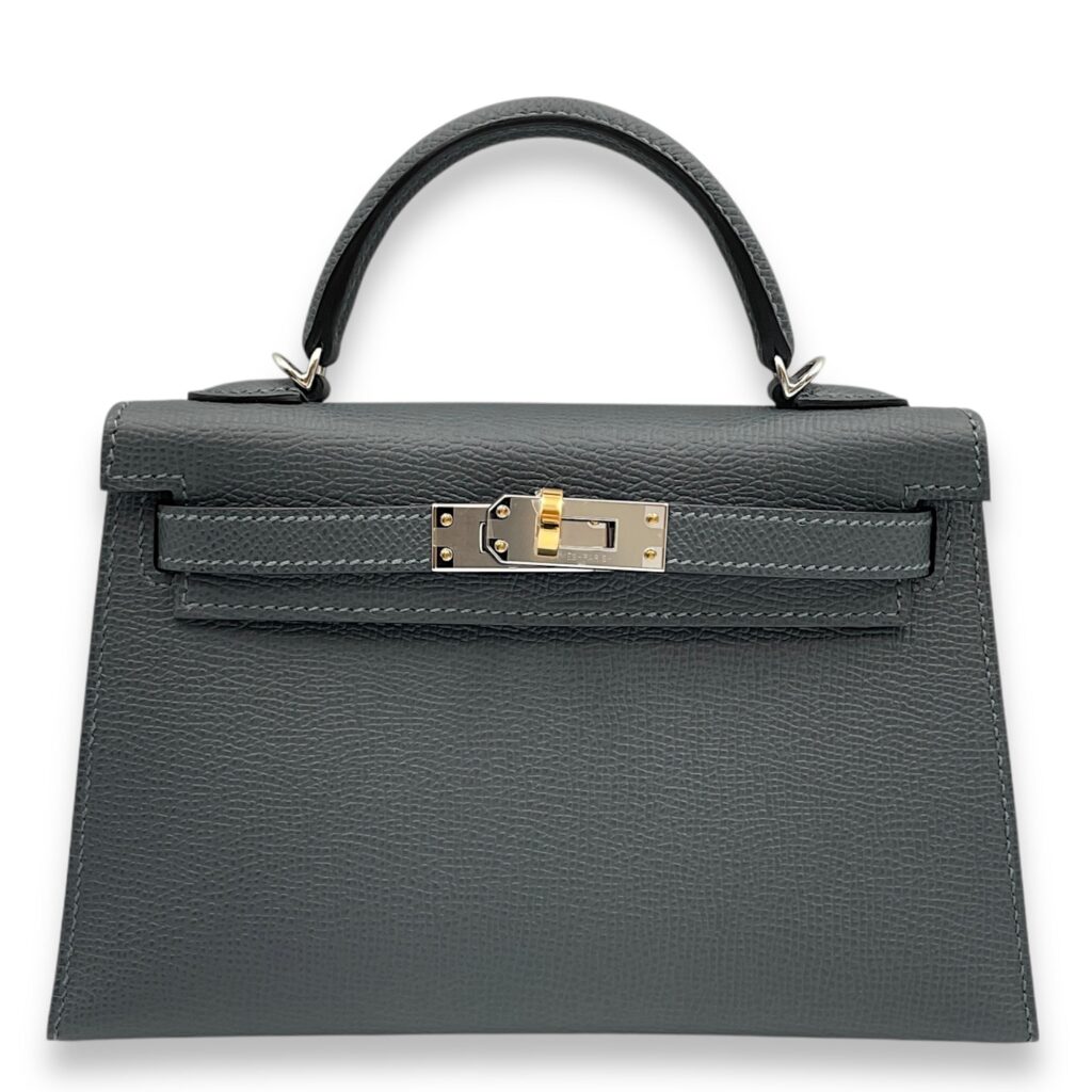Sellier Kelly 20 Gris Misty in Epsom, Electrum hardware