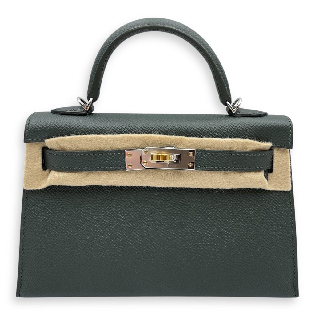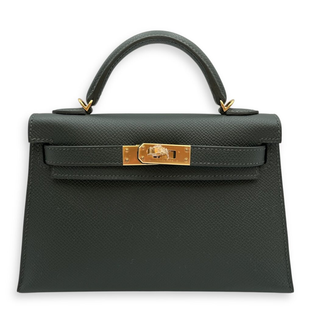 Sellier Kelly 20 Vert Mangrove in Epsom, Electrum hardware