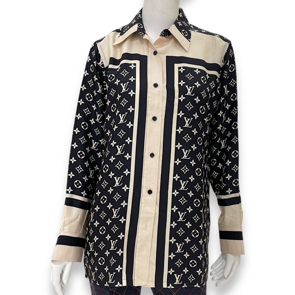 LV Stripe Accent Monogram Pyjamas Silk Shirt 34 Black Ready-To-Wear