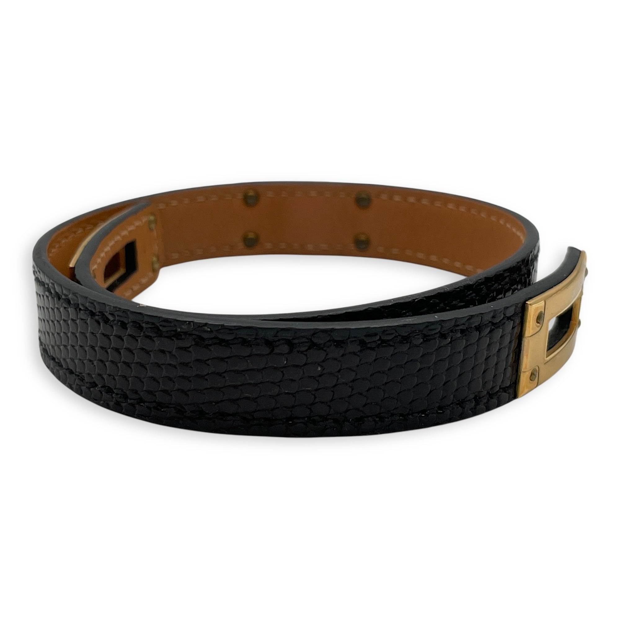 Kelly Double Tour T1 Black Bracelet in Lizard Varanus Niloticus, Gold hardware