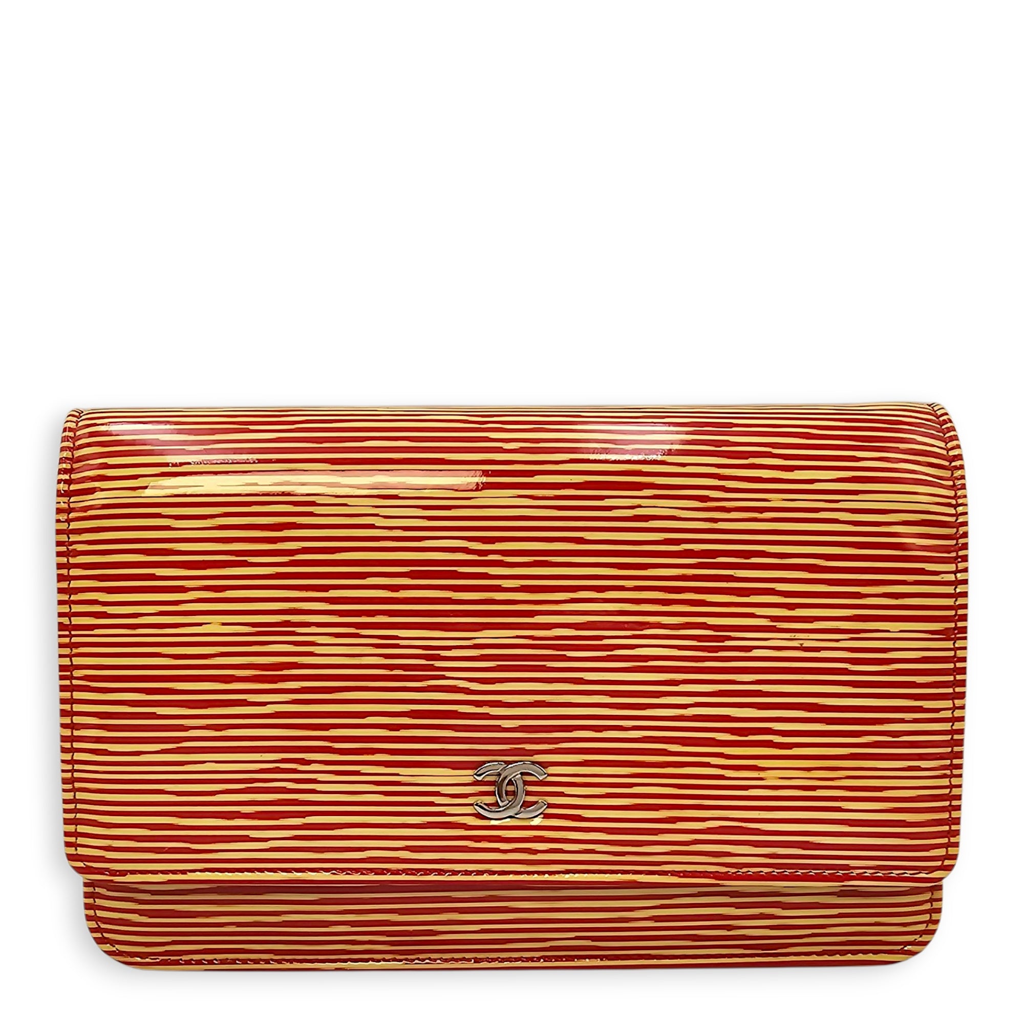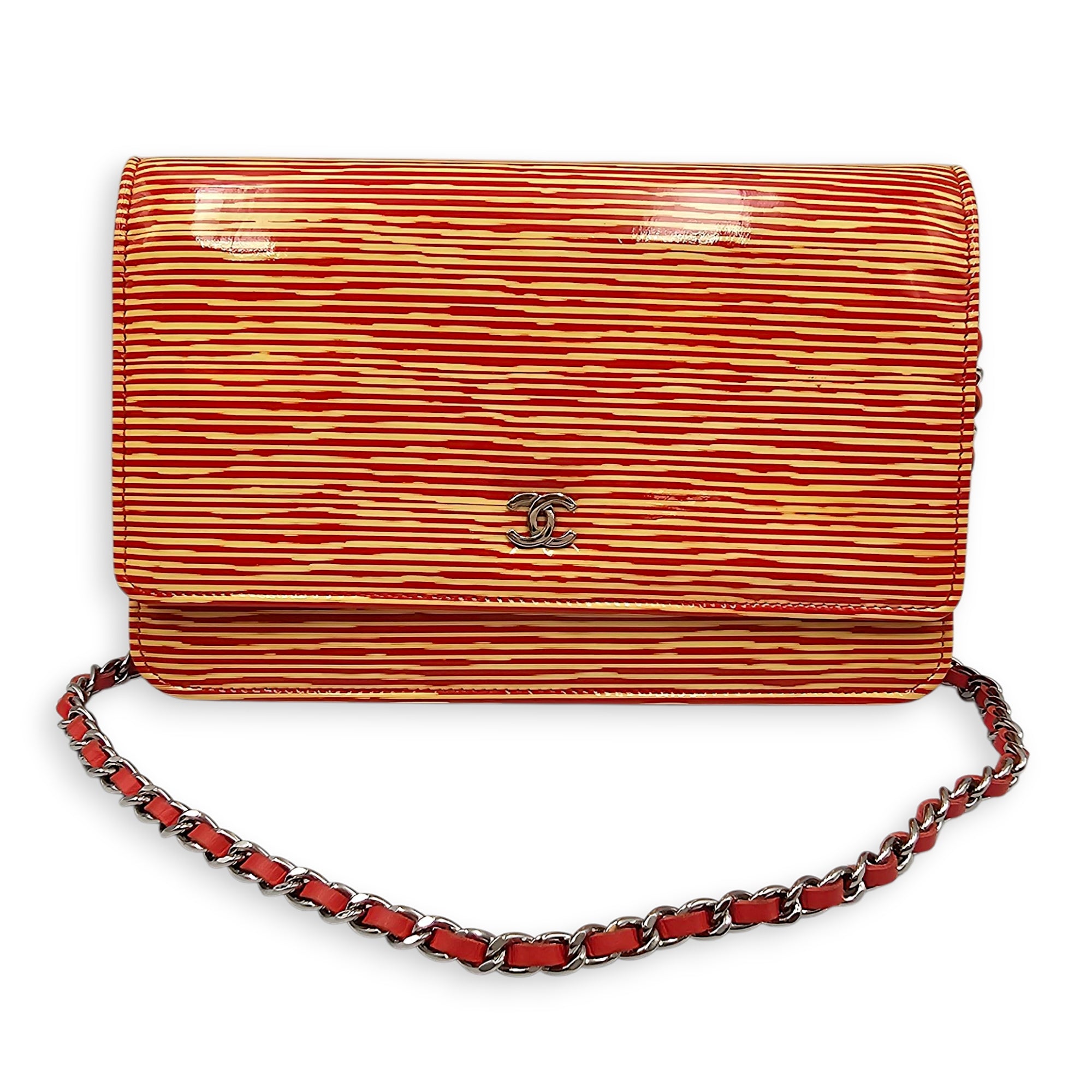 Limited Edition CC Orange Wallet on Chain in Patent Leather, Silver hardware