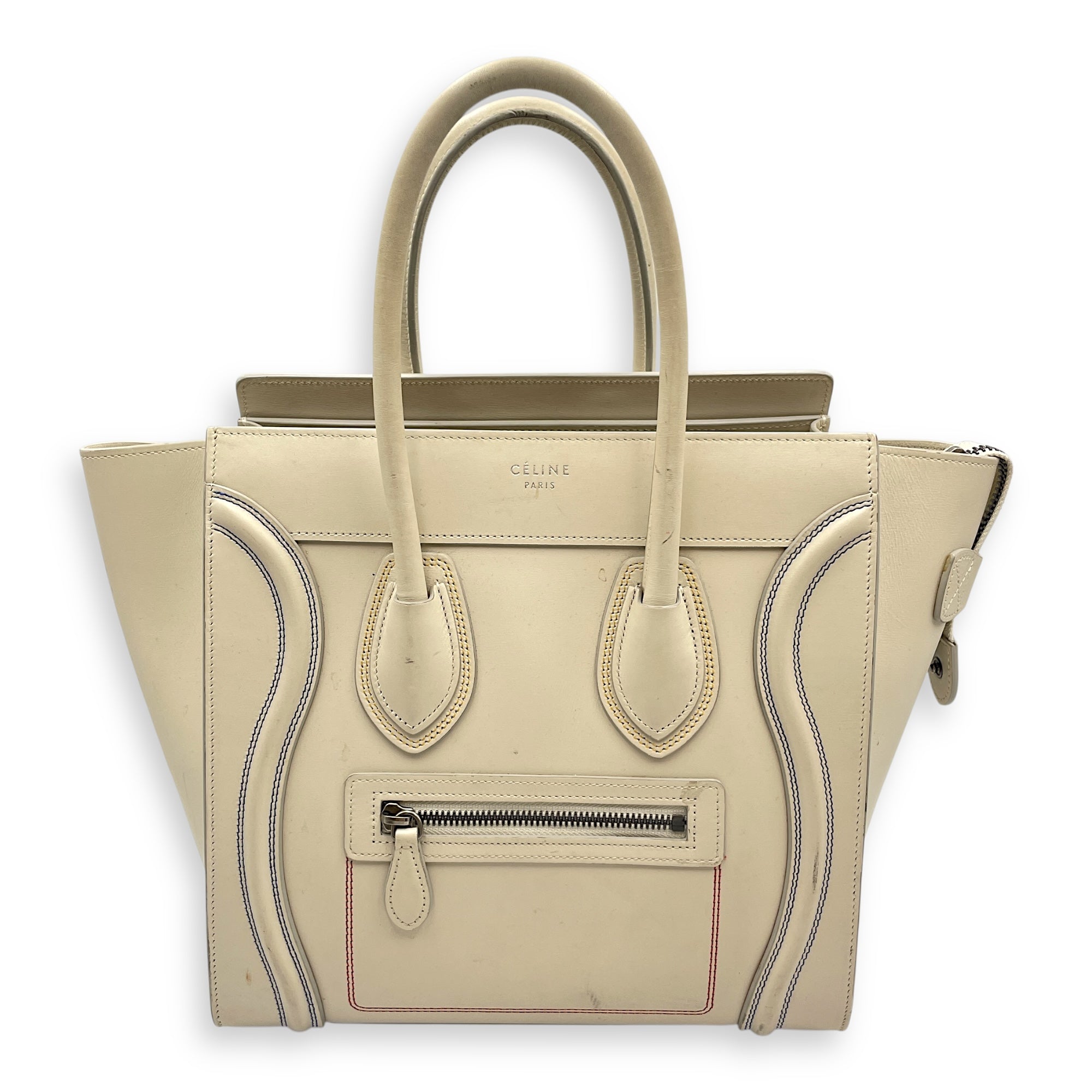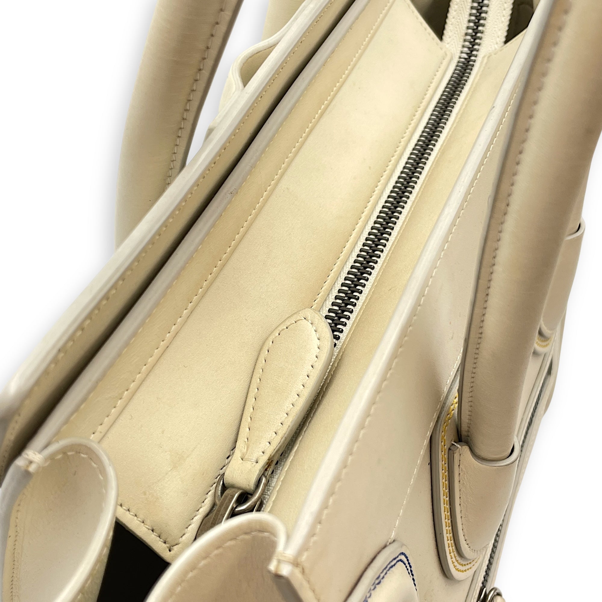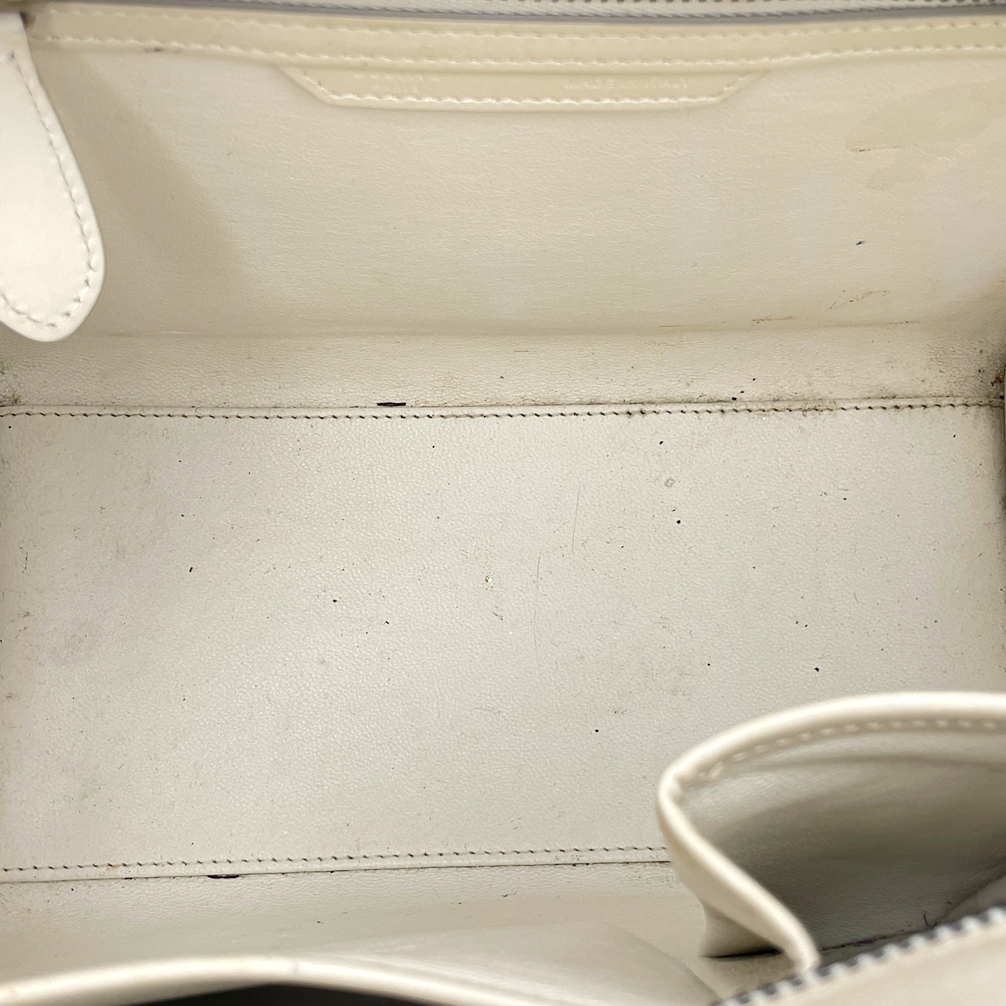 – Surface: Stain and yellowing on the bag – Compartments: Stains on the interior