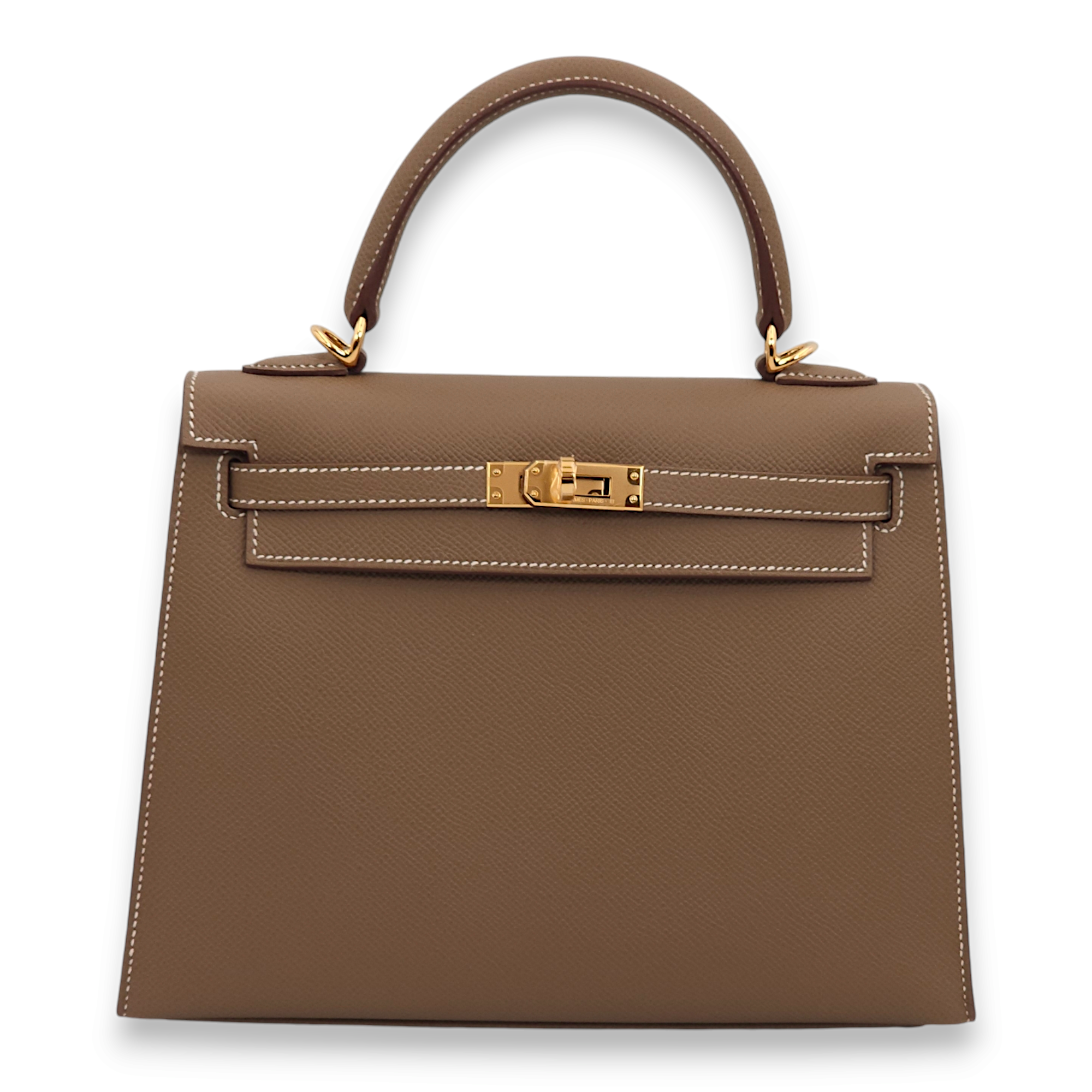 Sellier Kelly 25 Etoupe in Epsom, Gold hardware